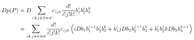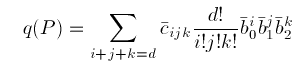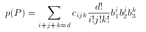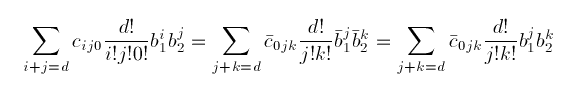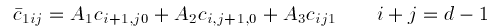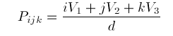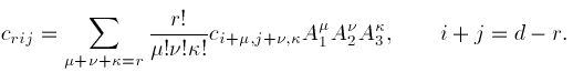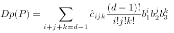 Note that the sum of the subscripts i, j, and k is equal rather than less than or equal to d, and that there are as many coefficients in (3) as there are in (1).