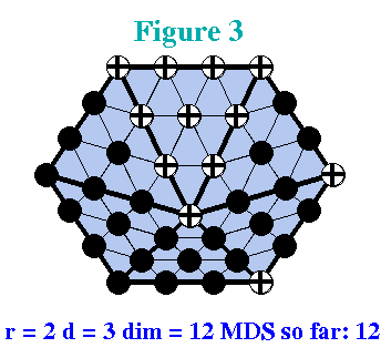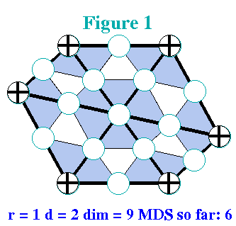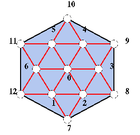 The figure nearby shows a hexagonal triangulation whose various configurations exhibit numerous discrepancies between the true dimension and Schumaker's lower bound. Click here or on the picture to find out more about dimensions on this triangulation.