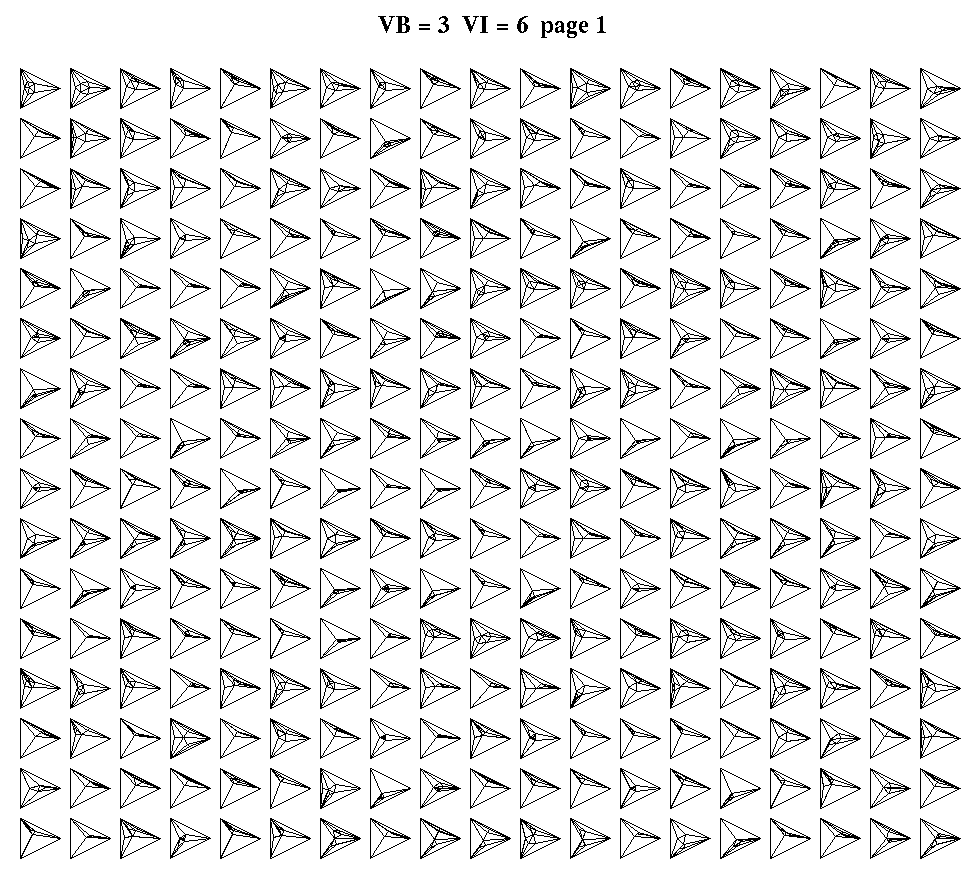 Triangulations with 3 boundary vertices and 6 interior vertices.