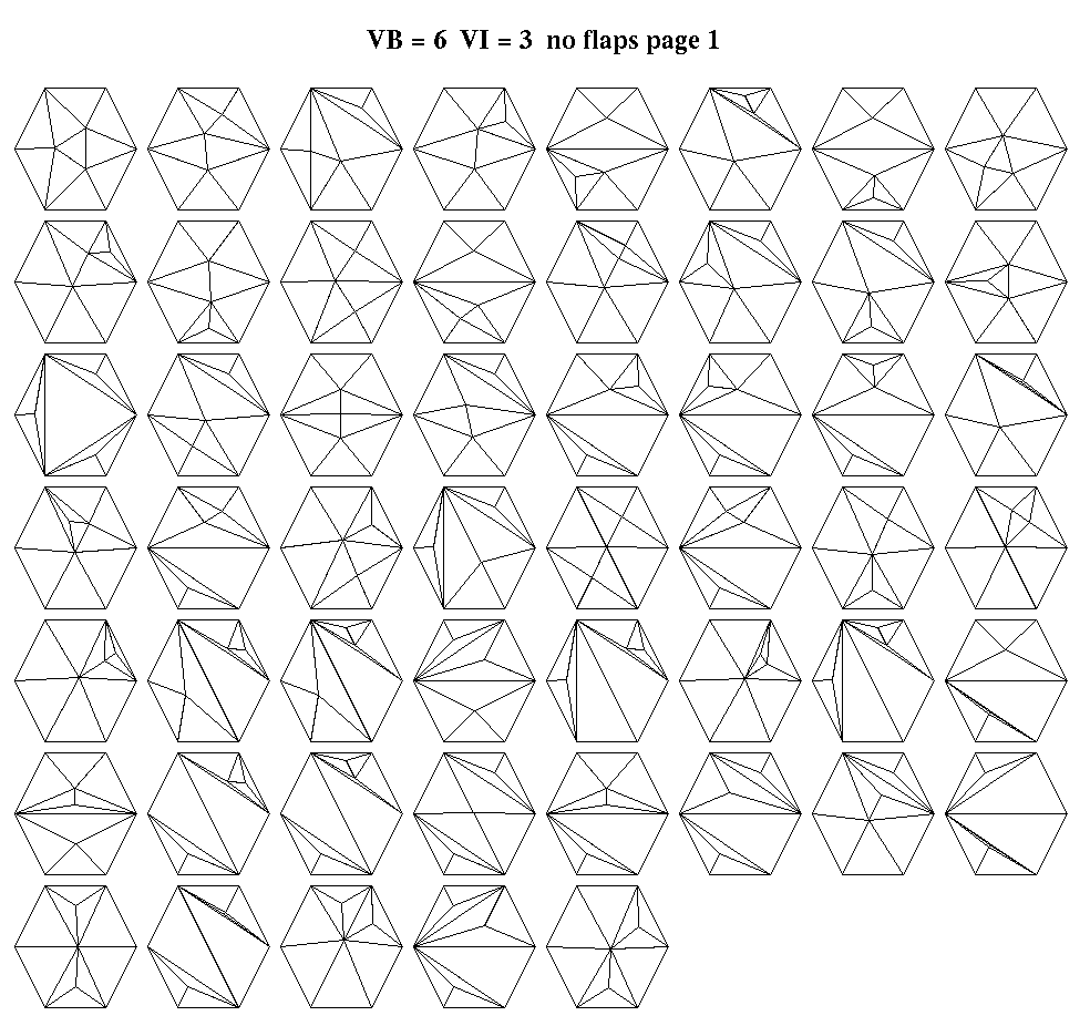 Triangulations with 6 boundary vertices and 3 interior vertices.
