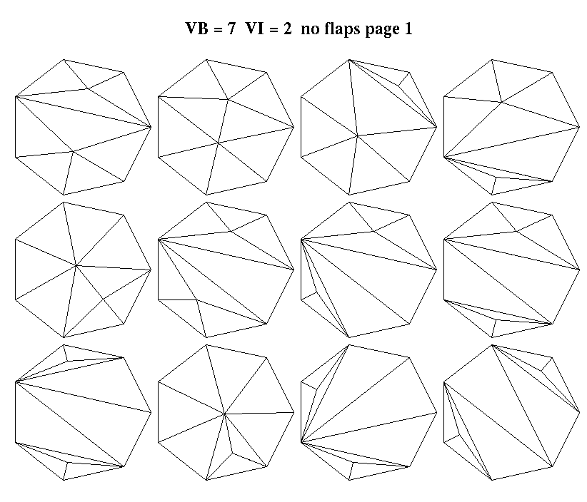 One Triangulation with 7 boundary vertices and 2 interior vertices.