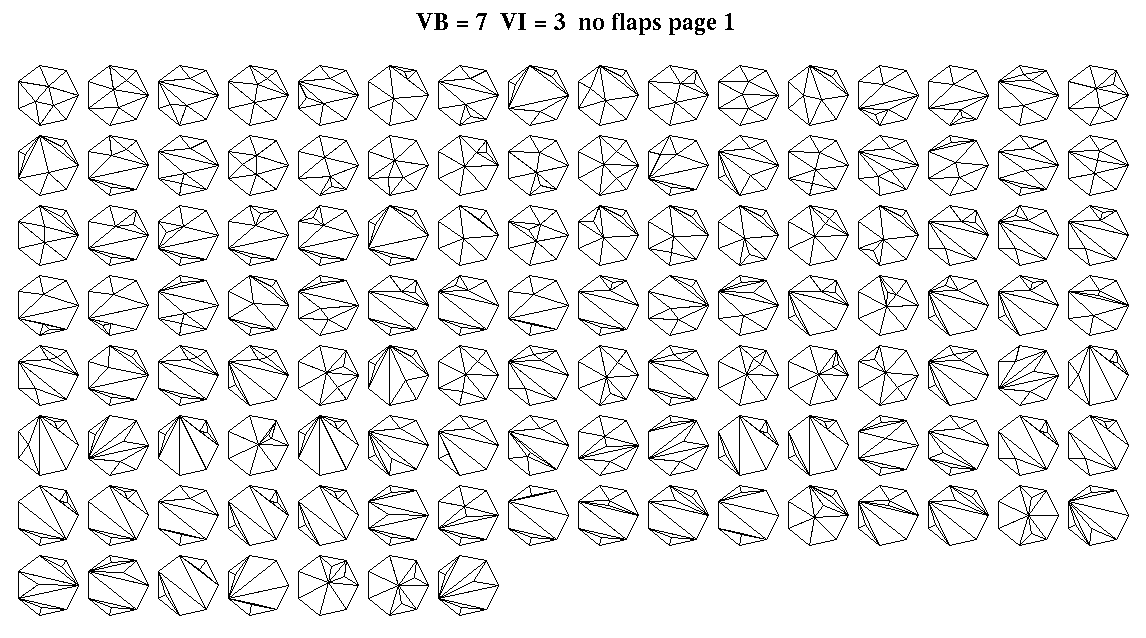 Triangulations with 7 boundary vertices and 3 interior vertices.