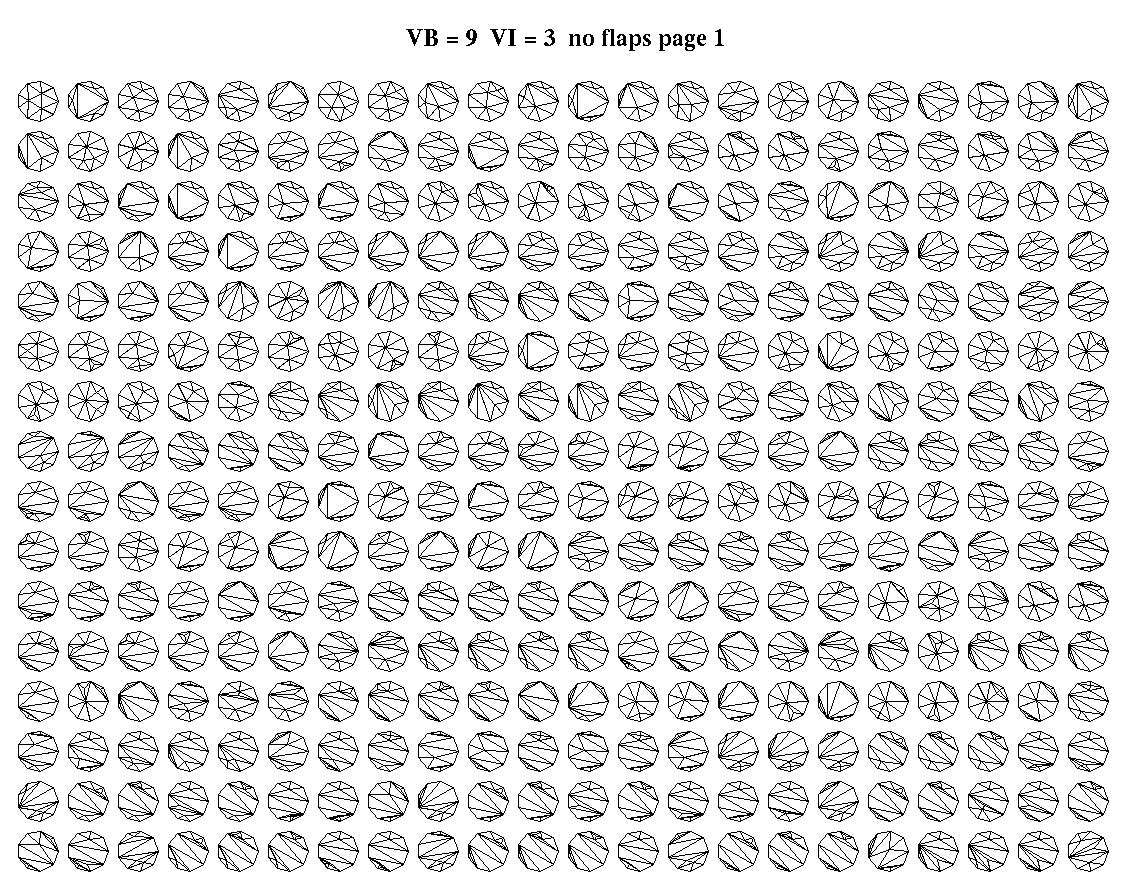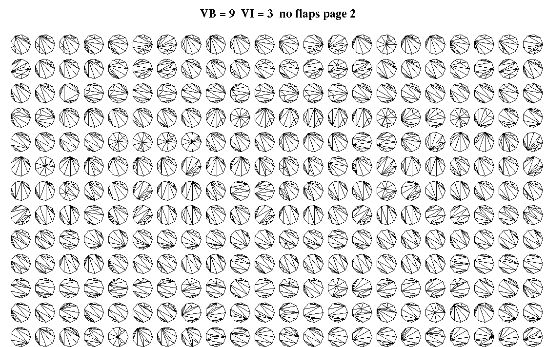 Triangulations with 9 boundary vertices and 3 interior vertices.